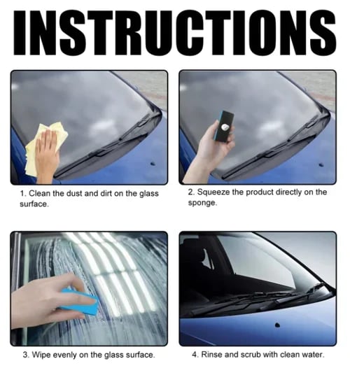 Easy to remove stubborn stains and aging coatings on glass, such as watermarks, rain, bird, oil, etc. Suitable for the front windshield, side windshield, car sunroof, household glass, etc.