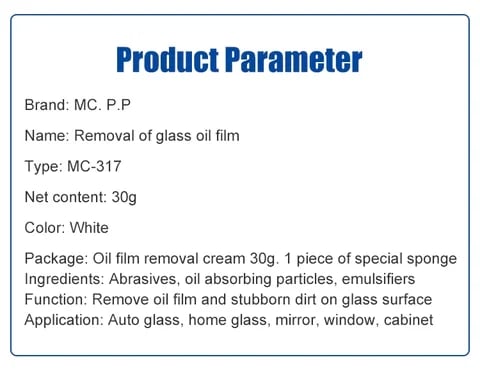 The car windshield oil film cleaner uses strong decontamination and nano-refining technology adds surfactants and contains diatomaceous earth, etc.