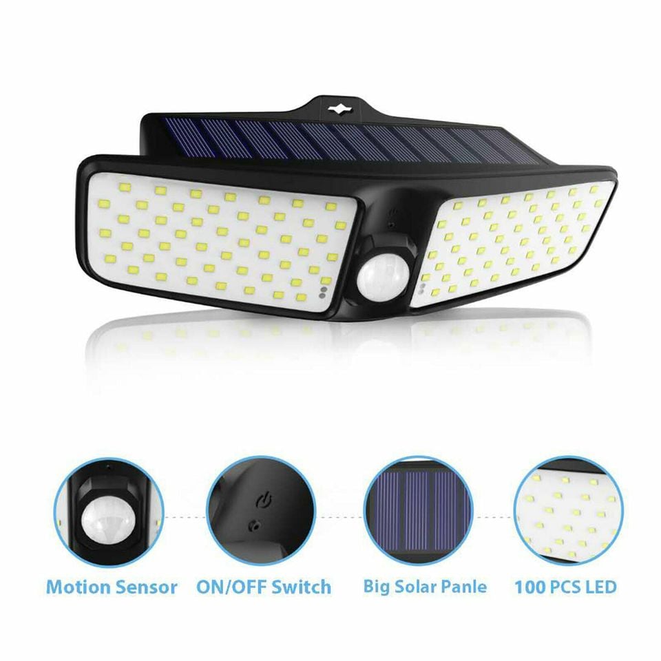 100 LED Solar Wall Lights Wireless IP65 Waterproof Wireless Security Solar Motion Sensor Light Outdoor for Garden, Yard, Fence, Driveway