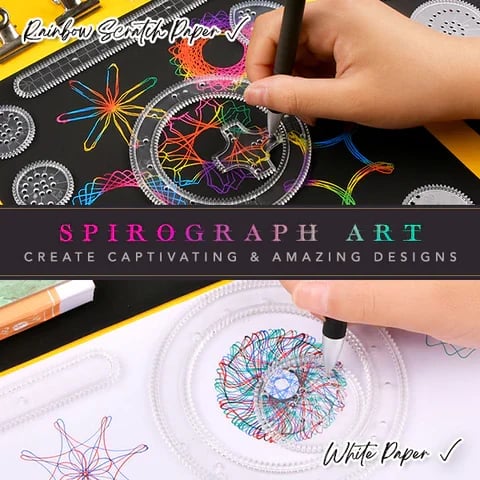 Spirograph Geometric Ruler Set is an all-inclusive set that allows you to create countless amazing spirographs. Creating all of those dizzying and cool drawings can provide hours of fun, as well as training artistic imagination and building geometry intuition. Great for both kids & adults.