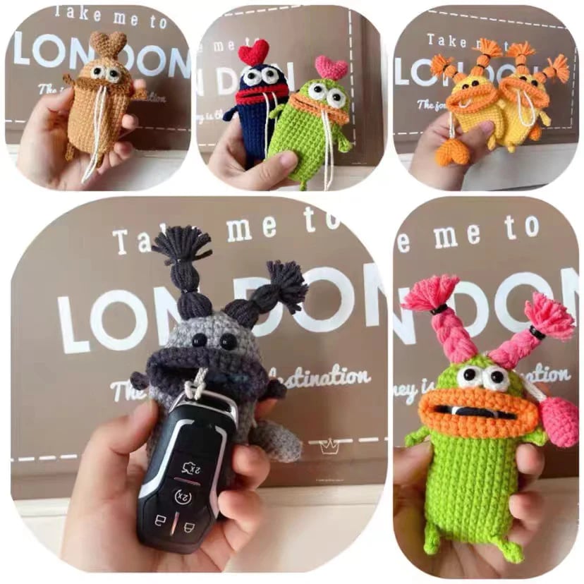 - 【Novelty Design】Handmade crochet key case/holder crochet little monster key case, lightweight and stylish design keeps your car keys visible everywhere. The creative sausage monster design makes you more dazzling in the crowd.