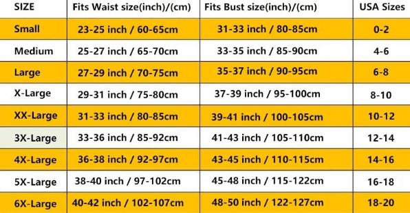 | SIZE | WAIST(inch)/(cm) | BUST(inch)/(cm) |