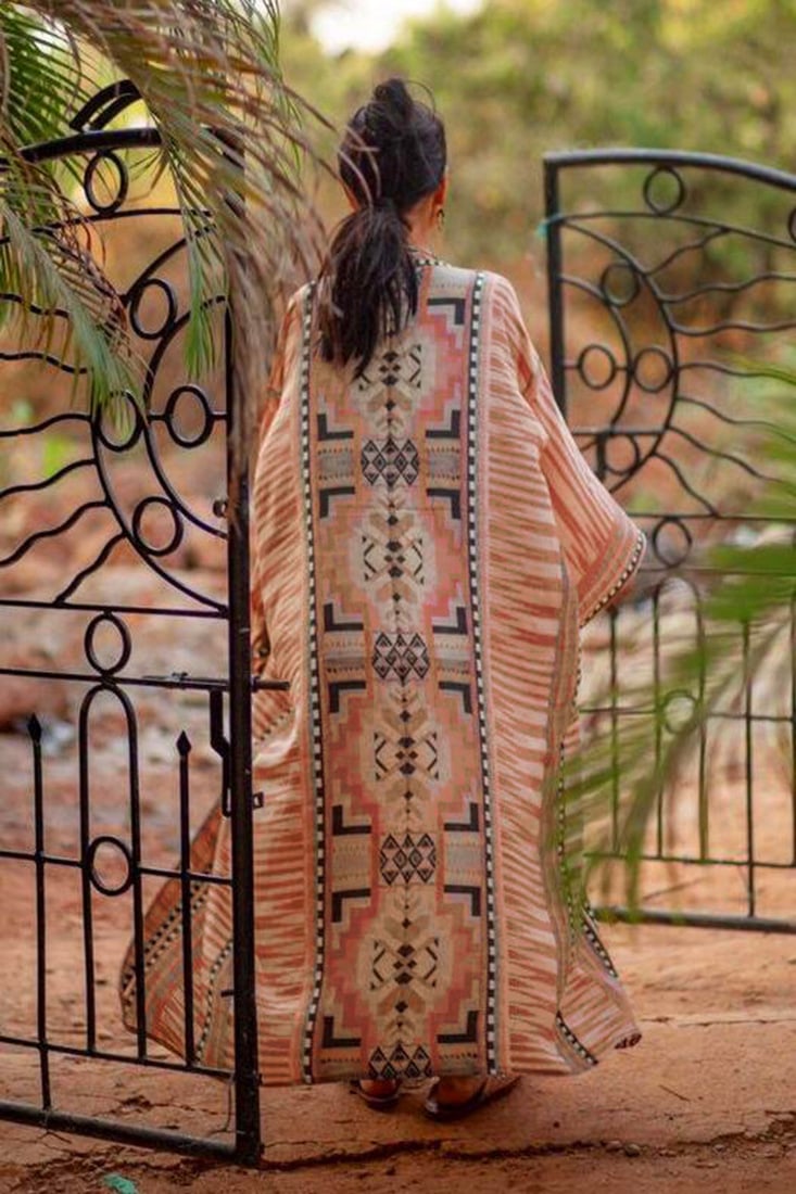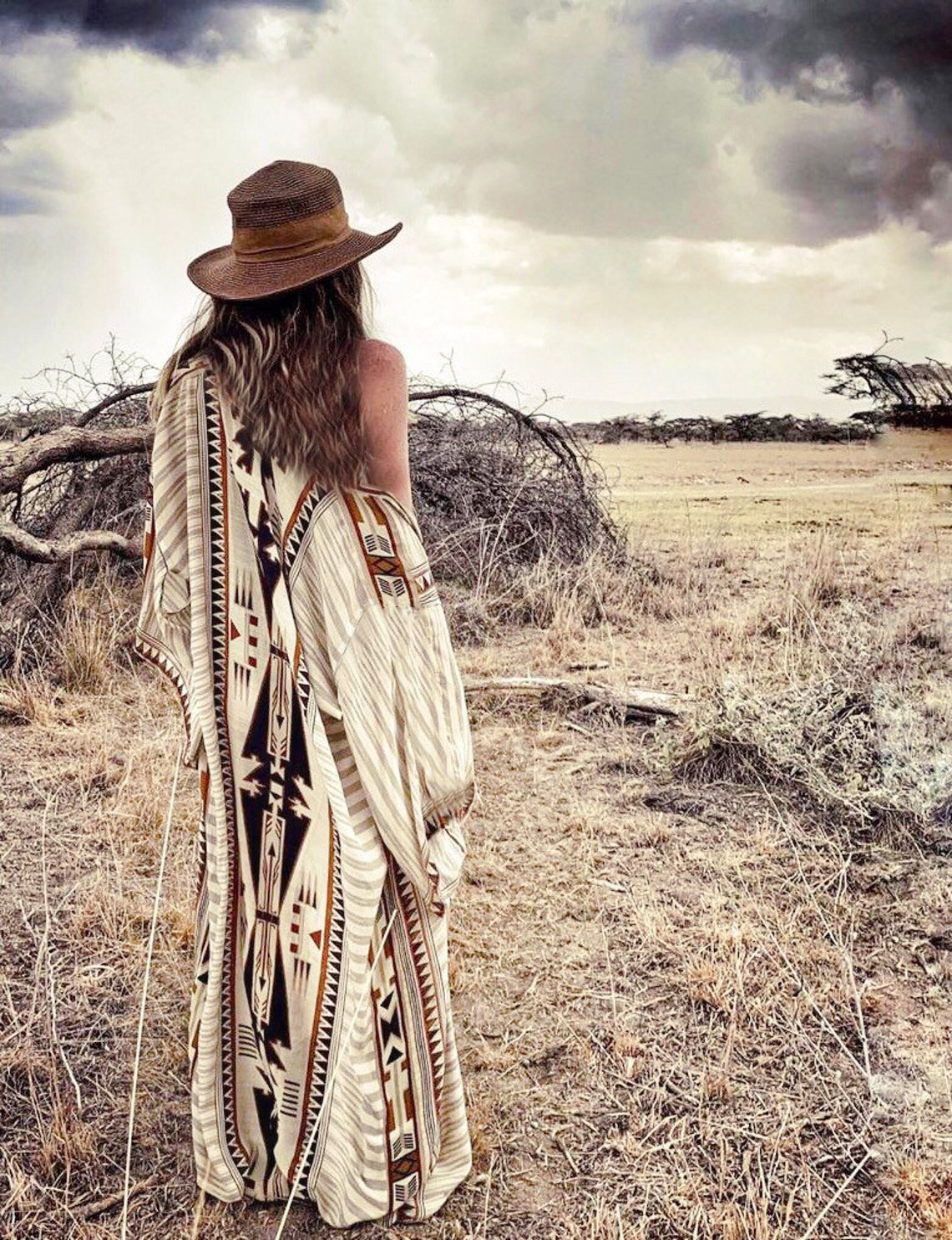 Bohemian tribal printed kimono wrap, in shades of brown, black, rust and tan on a ivory background absolutely stunning!!